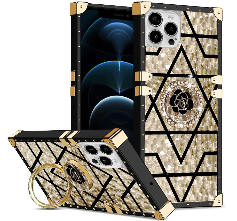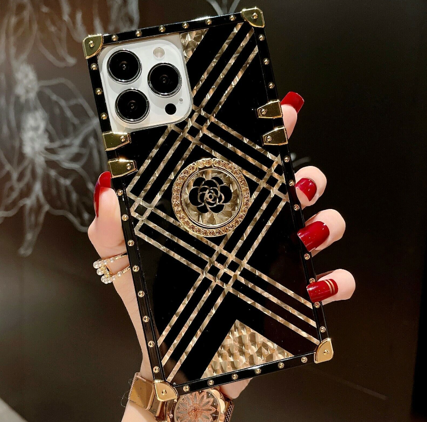 Bling Square Leopard Flower Phone Case For iPhone 14 13 12 11 Pro Max XR 8 7 SE